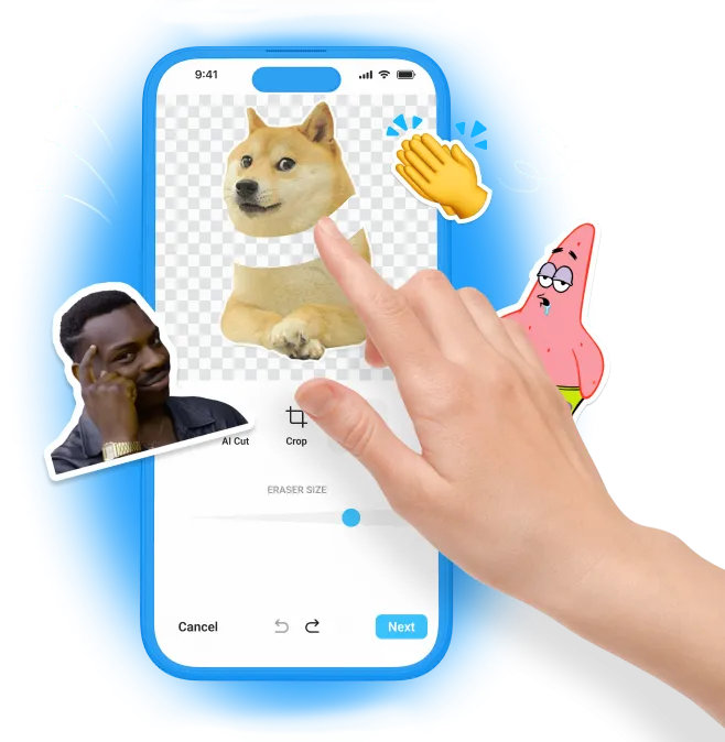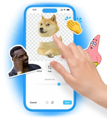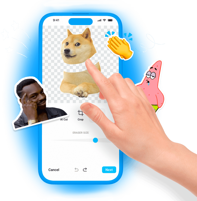 Use the sticker editor to create your own sticker. You can remove the background from your photo and add funny and stylish texts.